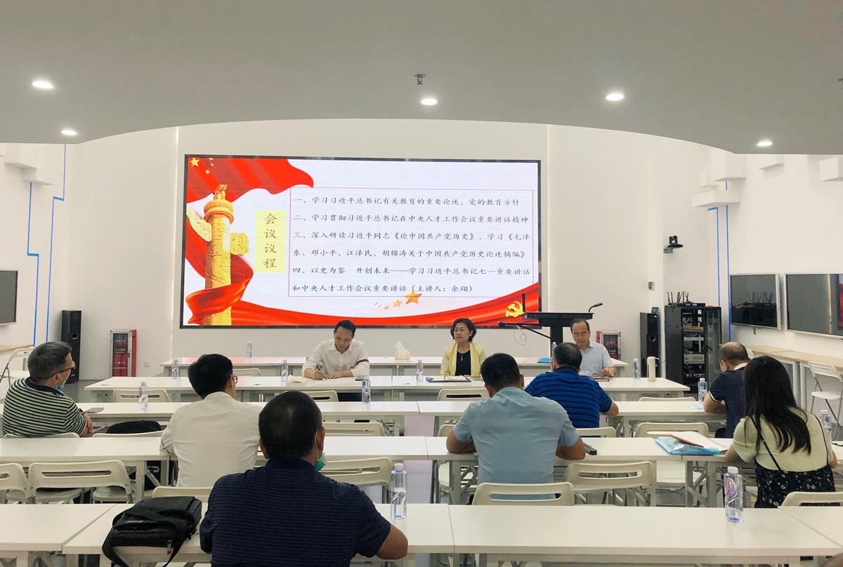 会上,唐宇领学习近平《论中国共产党历史》《深入学习习近平总书记关于教育的重要论述》《毛泽东邓小平江泽民胡锦涛关于中国共产党历史论述摘编》等著作,解读习近平总书记在中央人才工作会议上重要讲话精神,并畅谈学习体会:一是要切实提高政治站位,凝聚思想意识;二是要强化政治担当,争做“四有”好老师;三是作为科研管理部门工作人员要紧紧依靠广大科研工作者,做好科技服务工作,促进科技成果转化,提升学校科技水平。