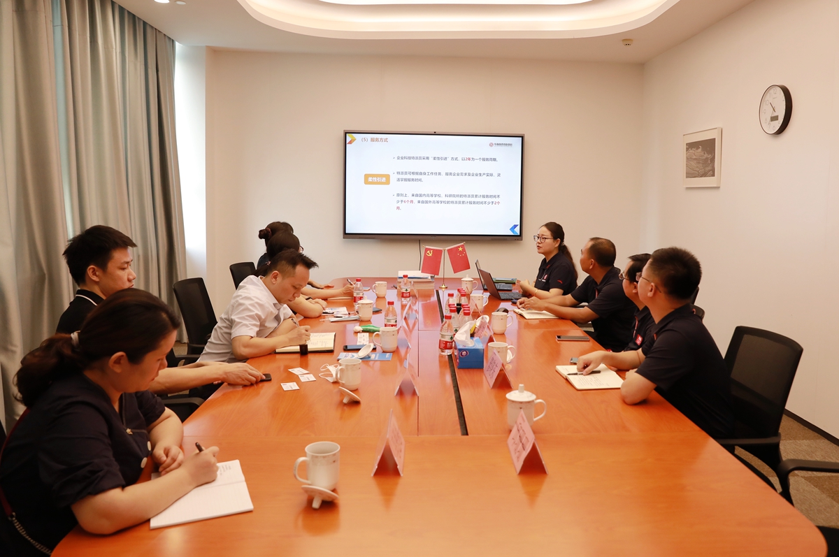 交流人员一行参观了华南技术转移中心南沙总部大楼展厅,公司总经理李奎详细介绍了中心的建设背景、组织架构、发展模式及业务布局等内容,并特别介绍了“企业科技特派员”、“8分钟路演”等线上平台运营情况以及该中心和省内各高校开展合作的情况。